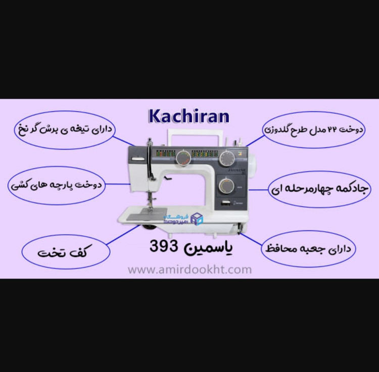 یکی از تولیدات حرفه ای خانواده یاسمین شرکت کاچیران چرخ خیاطی مدل 393 است. چرخ خیاطی کاچیران مدل یاسمین 393 بعد از انتقال تکنولوژی محصول ژانومه ژاپن در کارخانجات چرخ خیاطی ایران-کاچیران با بهره گیری از پیشرفته ترین تکنولوژی های روز ژاپن به دست مهندسین، تکنسین ها و کارگران شایسته ایرانی در داخل کشورمان ایران تولید شده است.برند کاچیران، از سال 1376 با ایجاد واحد صادرات، بازاریابی و تحقیق بازار در دنیا کار خود را آغاز کرد. این برند ایرانی موفق شده است در بازه زمانی نسبتاً کوتاه، محصولات خود را به بیش از 35 کشور جهان صادر کرده است. همچنین این برند به عنوان یکی از صد برند برتر ایرانی برگزیده در جشنواره بین اللمللی برترین نام و نشان های انتخاب شد. این سری چرخهای کاچیران با کاربرد خوب و کیفیت دوخت عالی جزو بهترین محصولات شرکت کاچیران می باشند